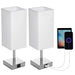 Bedside Table Lamp with Fabric Shade - Warm White LED Bulb, Touch Control, Desk Light, USB A and Type-C Charging Ports - Ideal for Nightstands, Work Desks and Study Areas